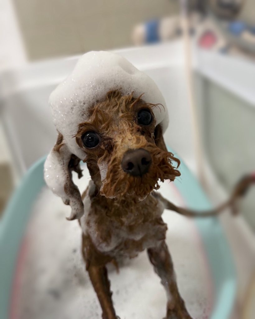 イクラくん。炭酸泉温浴と~っても気持ちよさそうでした~。お仕上がりもと~ってもふわっふわっで~す。😆👍