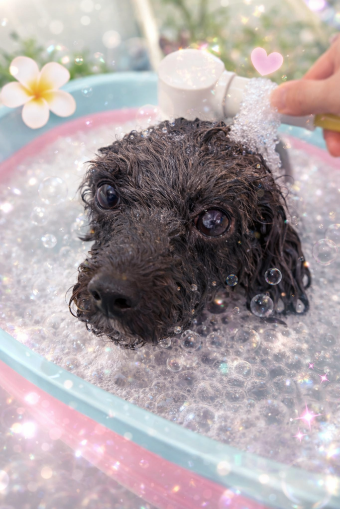 ココアちゃん。炭酸泉温浴と~っても気持ちよさそうでした~。お仕上がりもと~ってもふわっふわっで~す。😆👍