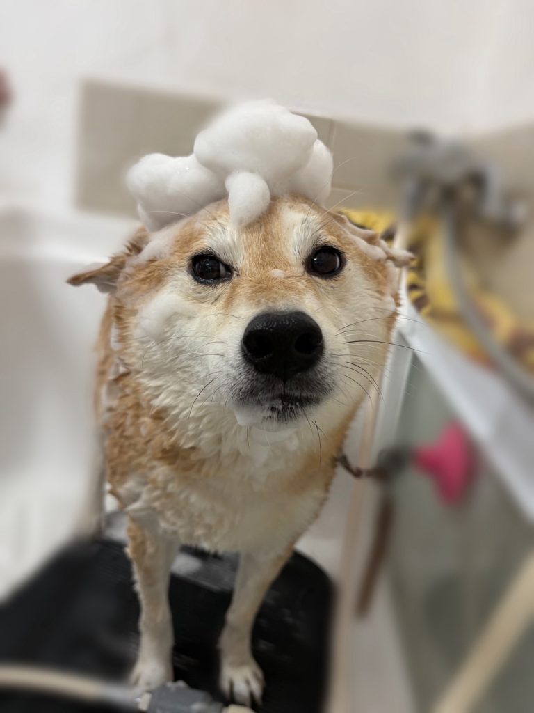 けやきくん。マイクロバブルの力で抜け毛さんたくさん取れたよ~。お仕上がりもふわっふわっで~す。🎵🎵🎵