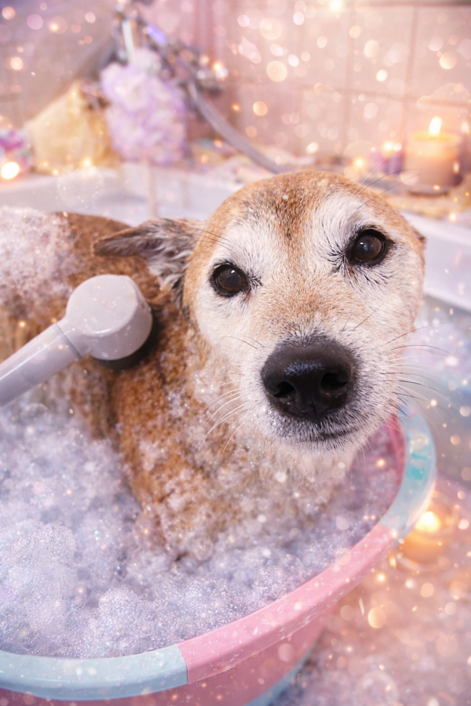 マイクロバブルにはそれぞれの泡にマイナスイオンが含まれており、プラスイオンを持つ毛穴の 汚れや皮脂などを吸着・浮上させることで毛穴の中の老廃物をスッキリ排出させます。 体臭などの症状を軽減するほかわんちゃんの掻く回数が少なくなり毛やフケが落ちないため お部屋も汚れません。 また温泉入浴と同じ効能がある為わんちゃんにも嬉しいリラックス&リフレッシュ 。わんちゃんに嬉しい次世代シャンプーです。