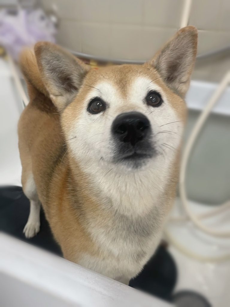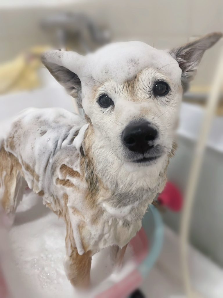 めぐちゃん。マイクロバブル温浴と~っても気持ちよさそうでした~。お仕上がりもふわっふわっで~す。🎵🎵🎵
