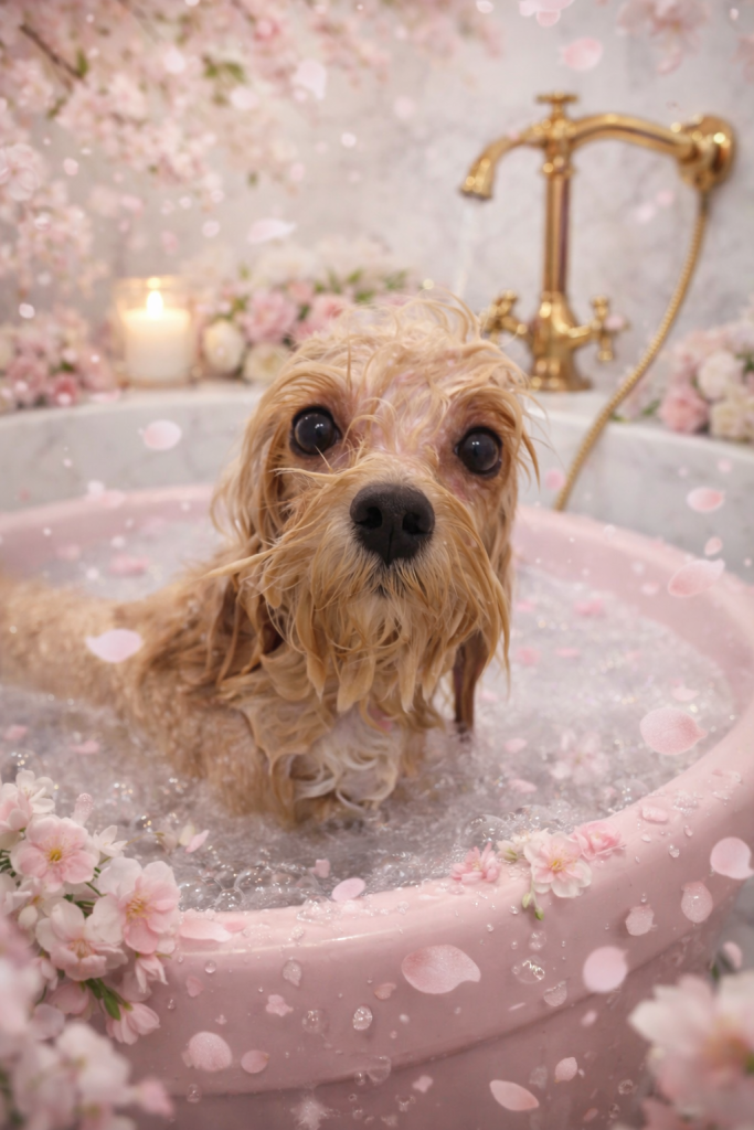 さ~っ。きなこくん。シャンプーマシーン使って今日は高濃度炭酸泉スパコースやって行こ~ね~。🛀🛀🛀