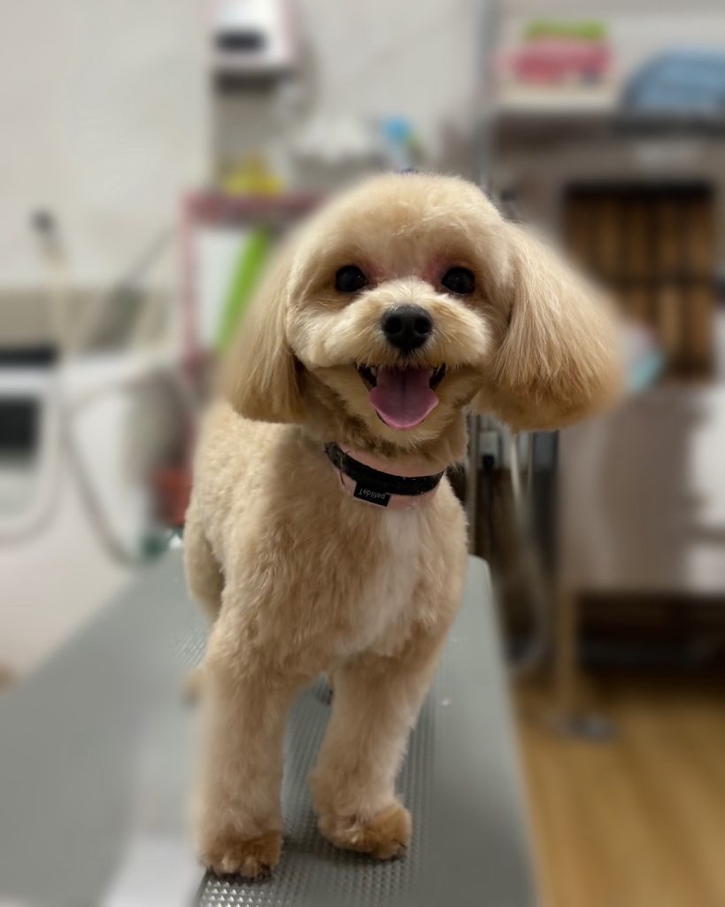 今回のオーダーは、全身13mm、お顔まあるく、お耳伸びた分カットしてすそまあるく、しっぽ筒状、マイクロバブルコースでした。