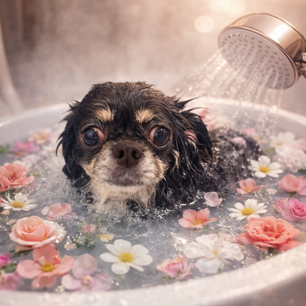しめじくん。炭酸泉温浴と~っても気持ちよさそうでした~。お仕上がりもふわっふわっで~す。😊👍