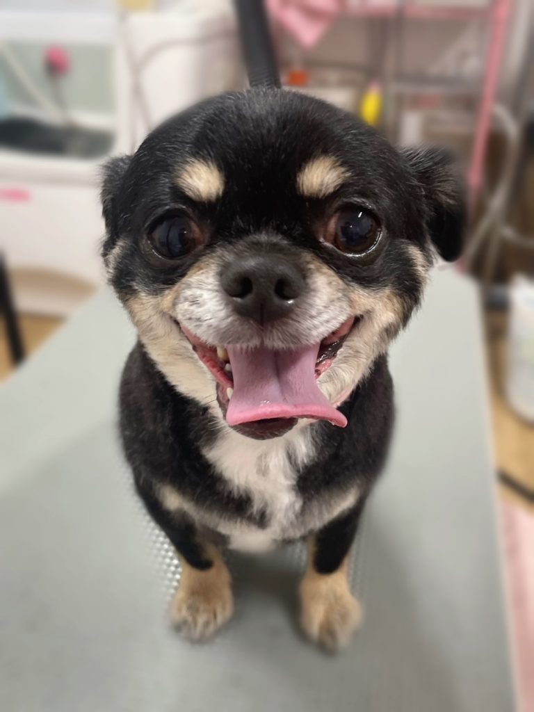 今回のオーダーは、お体10mmライオンカット、お耳前スッキリ、お耳~サイドととのえる、しっぽライオンさん、おひげカット、歯磨き、高濃度炭酸泉スパコースでした。