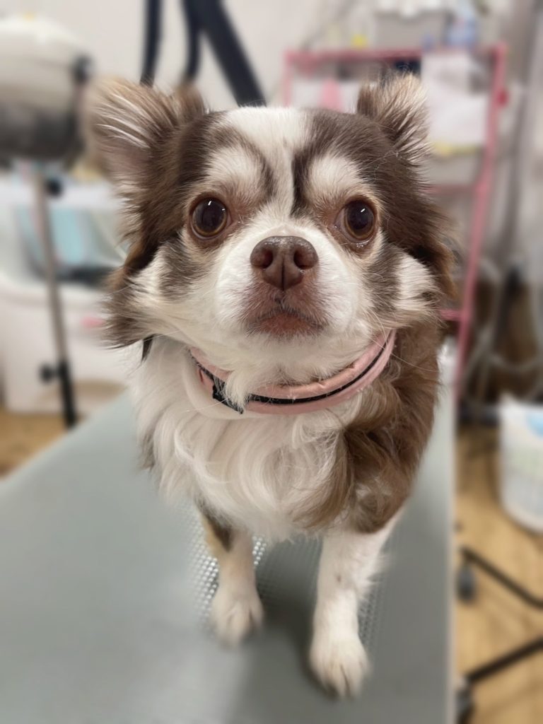 今回のオーダーは、お体10mmライオンカット、お耳前スッキリ、お耳~サイドととのえる、しっぽライオンさん、おひげカット、歯磨き、高濃度炭酸泉スパコースでした。