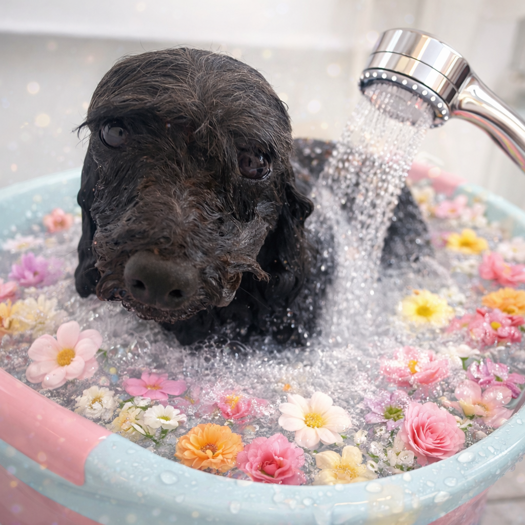 ロコちゃん。炭酸温浴と~っても気持ちよさそうでした~。お仕上がりもふわっふわっで~す。🎵🎵🎵
