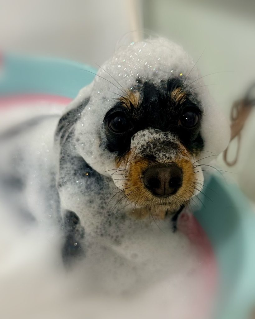 モモちゃん。マイクロバブル温浴と~っても気持ちよさそうでした~。お仕上がりもふわっふわっで~す。🎵🎵🎵
