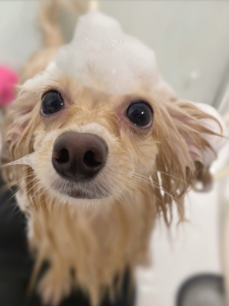 凪くん。炭酸泉温浴と~っても気持ちよさそうでした~。お仕上がりもふわっふわっで~す。😝😝😝