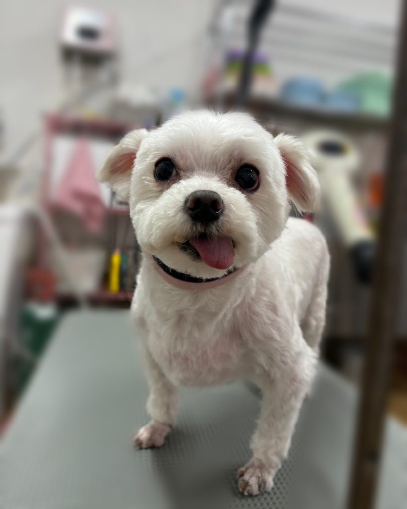 今回のオーダーは、全身6.4mm、お顔スッキリめでまあるく、お耳ふち1cm残して形なり、お尻スッキリ、しっぽ伸びた分カット、足先バリカン、マイクロバブルコースでした。