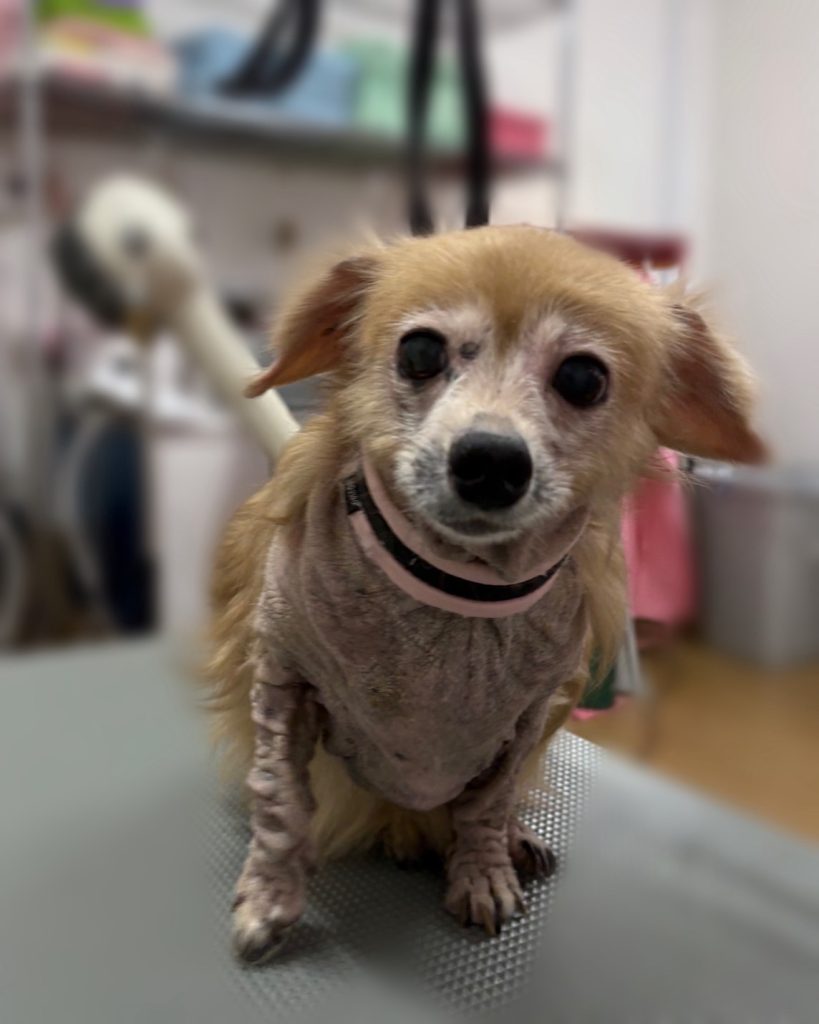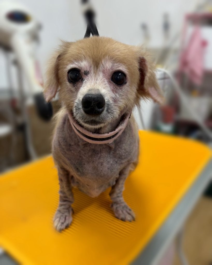 今回のオーダーは、全身13mm、お耳そのまま(前はカット)、しっぽハサミで筒状、高濃度炭酸泉スパコースでした。
