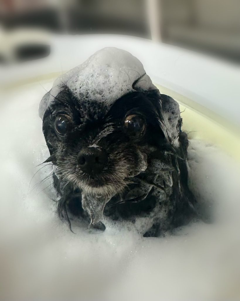 ぽっけちゃん。炭酸泉温浴と~っても気持ちよさそうでした~。お仕上がりもふわっふわっで~す。🎵🎵🎵