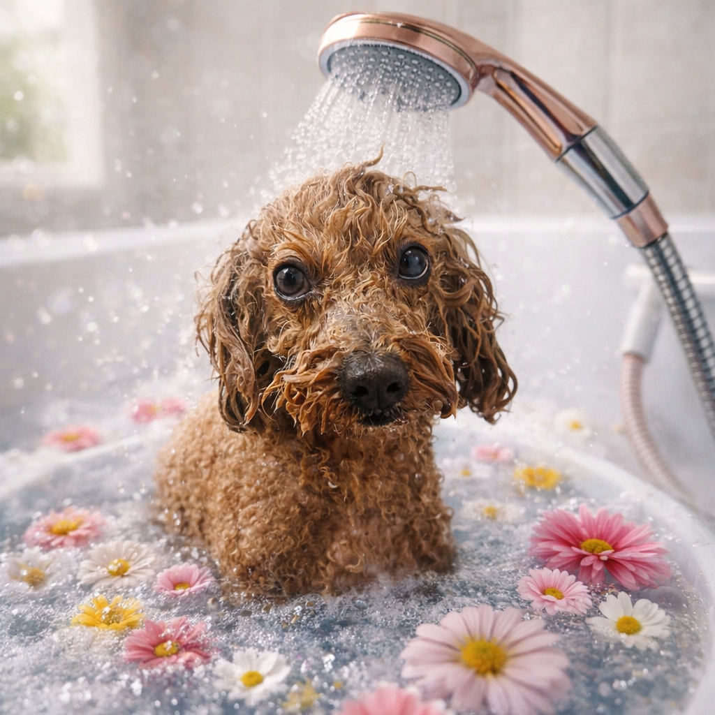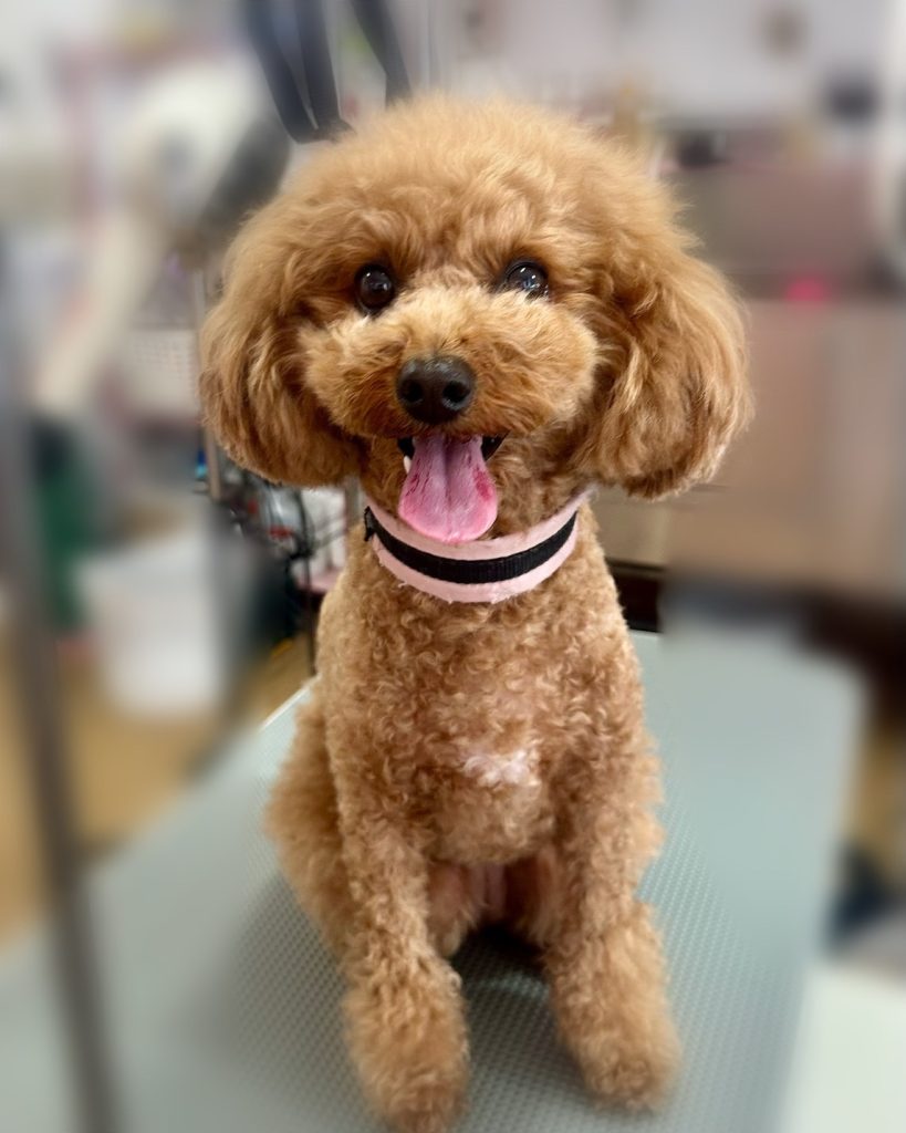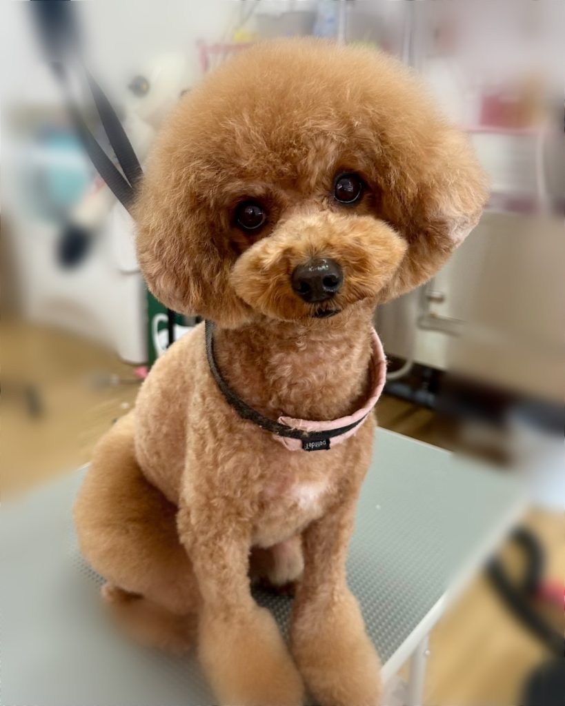 ももちゃん。炭酸泉温浴と~っても気持ちよさそうでした~。お仕上がりもふわっふわっで~す。🎵🎵🎵
