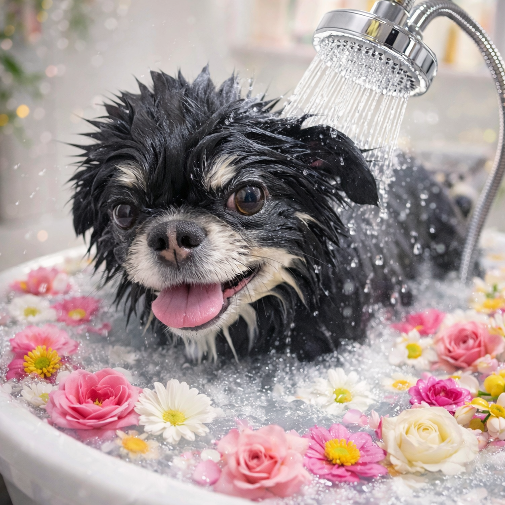 ちろちゃん。マイクロバブル温浴と~っても気持ちよさそうでした~。お仕上がりもふわっふわっで~す。🎵🎵🎵