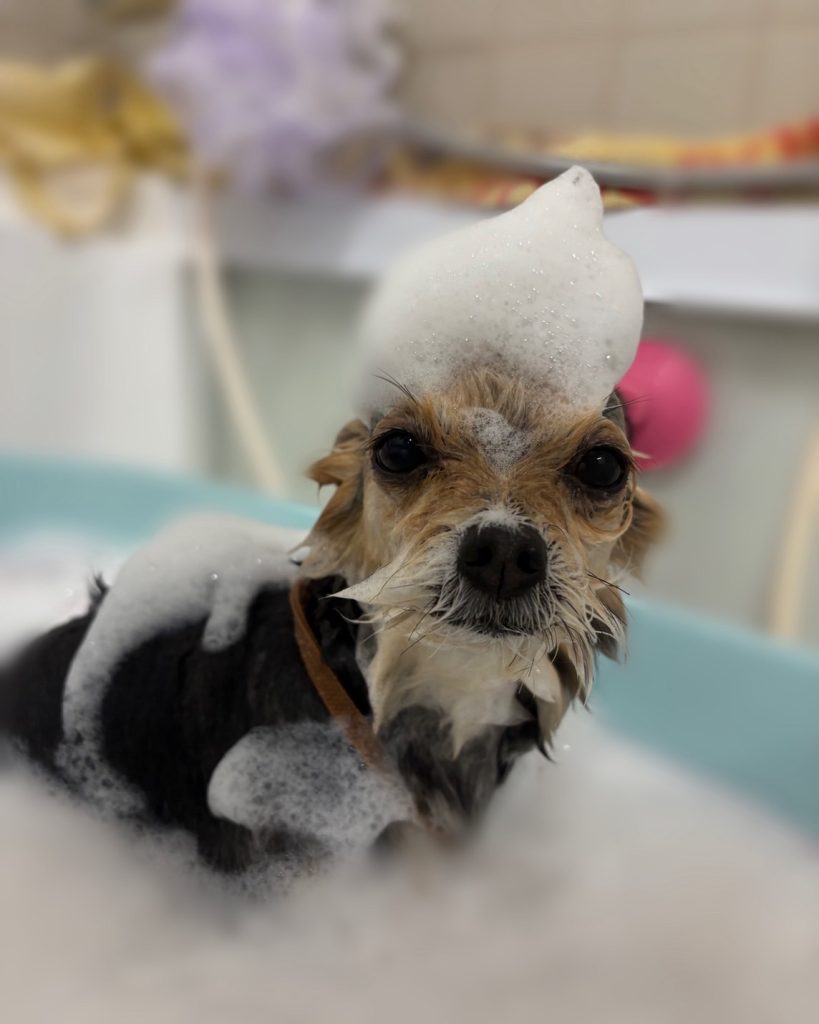 ななちゃん。マイクロバブル温浴と~っても気持ちよさそうでした~。お仕上がりもふわっふわっで~す。😆👍