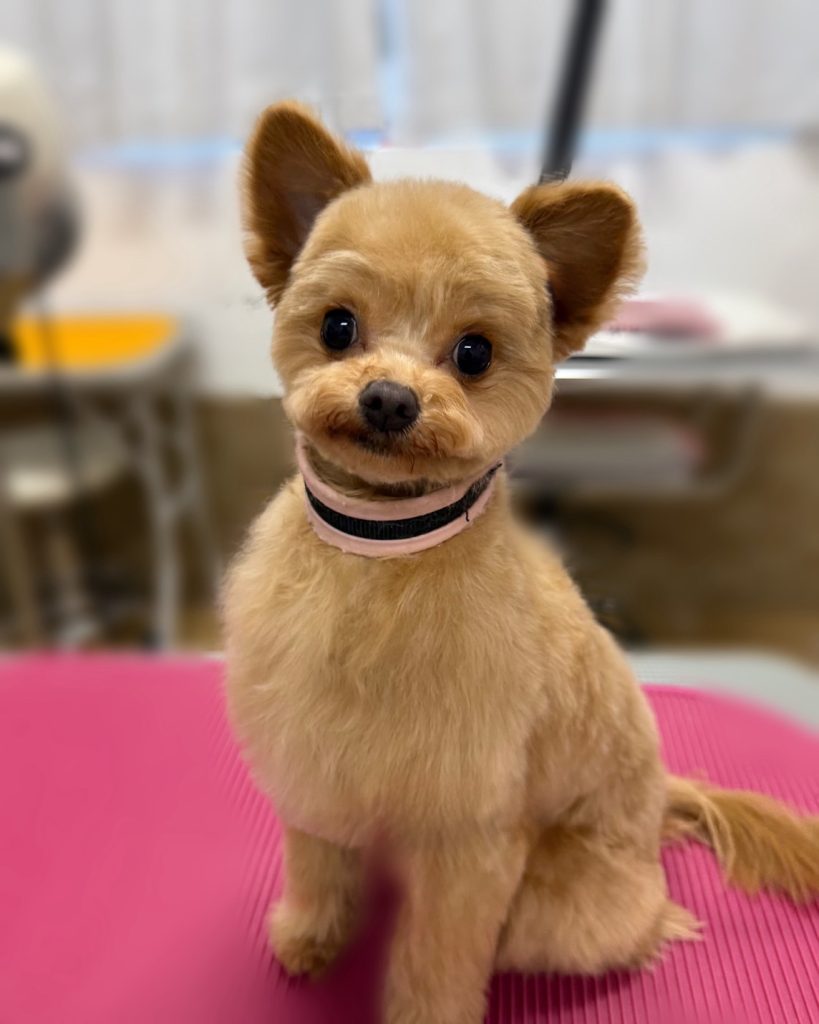 今回のオーダーは、全身16mm、お顔まあるく、目周りスッキリ、マズル楕円形(顎下短く)、お胸残す、お耳ふちギリでカットしてまあるくでした。