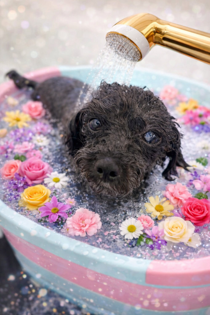 ココアちゃん。炭酸泉温浴と~っても気持ちよさそうでした~。お仕上がりもと~ってもふわっふわっで~す。😆👍