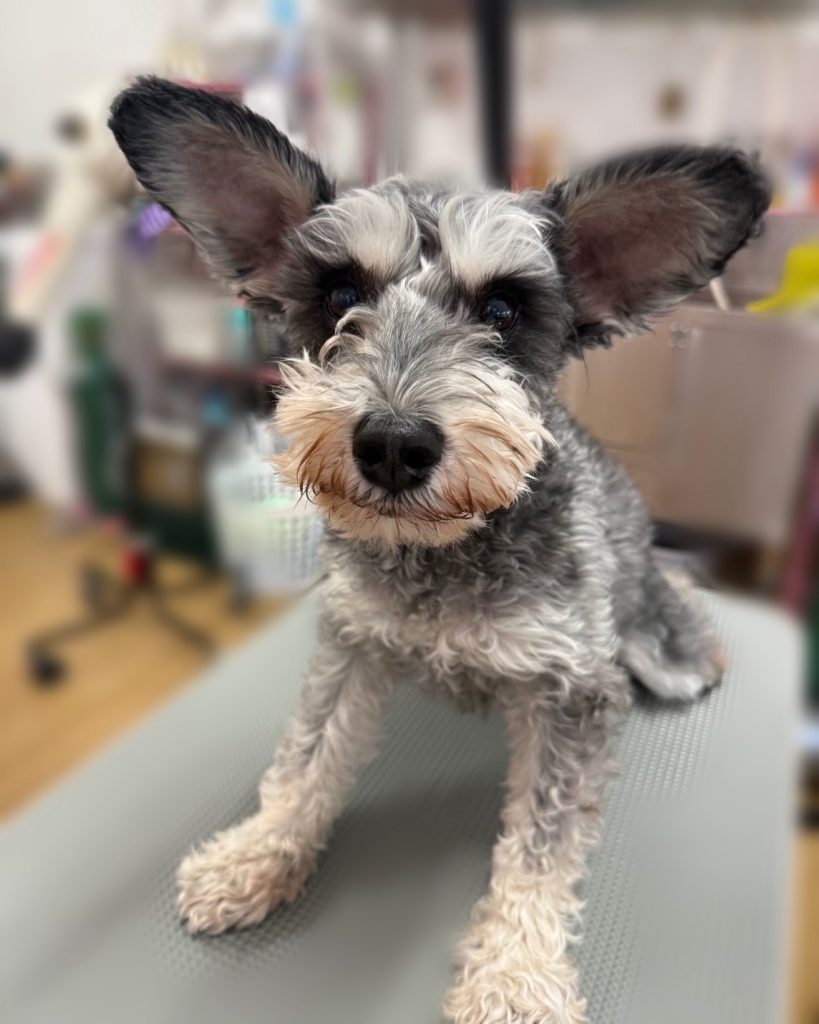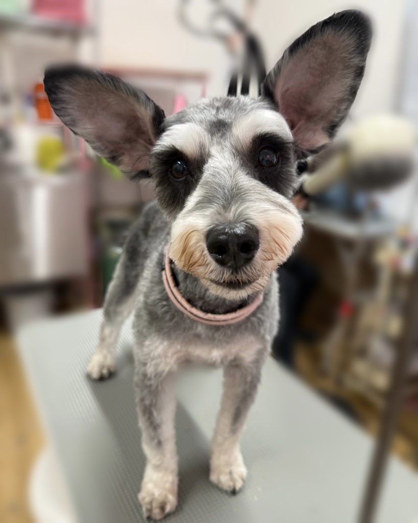 今回のオーダーは、全身9.6mm、お顔シュナウザーカット、眉毛まあるく、まつげ残し、お尻2mm、高濃度炭酸泉スパコースでした。