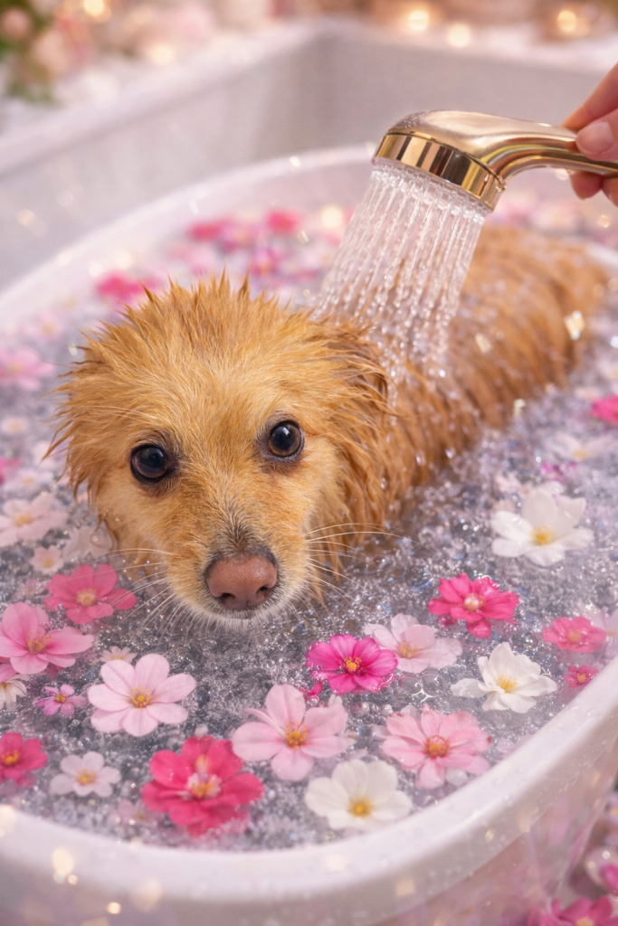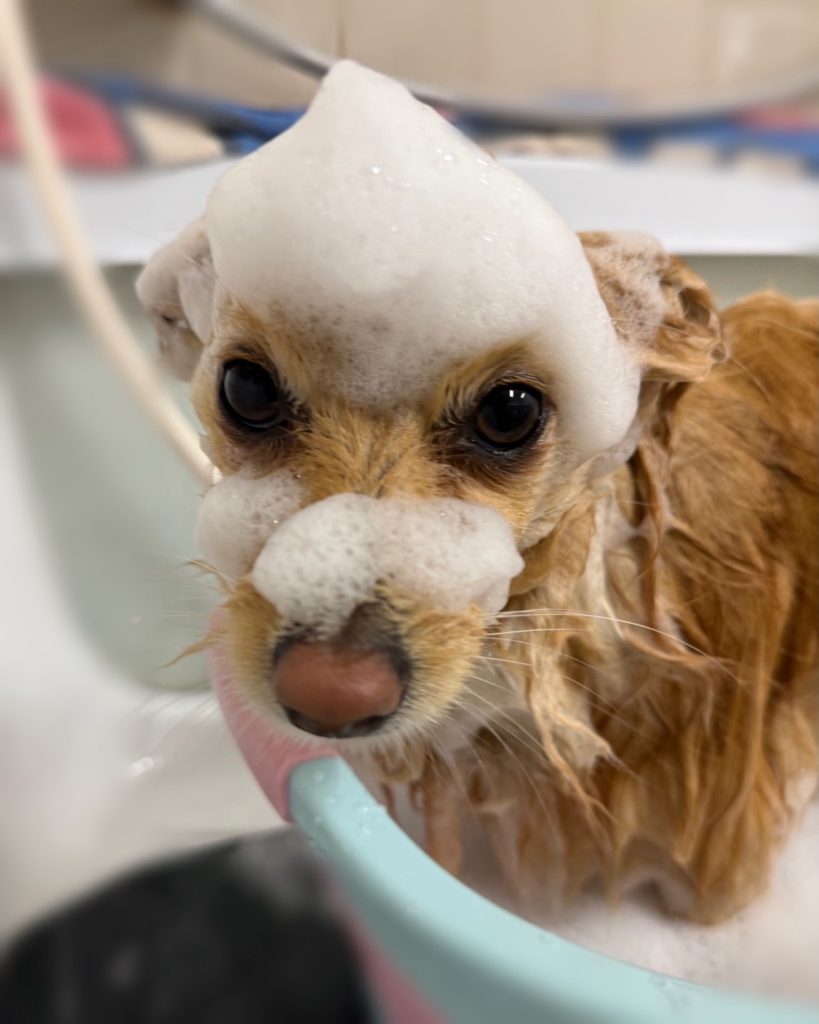 シャンプーコース+高濃度炭酸スパコースでぽんすけくん。さ~っぱりしました。ヾ(≧▽≦*)o