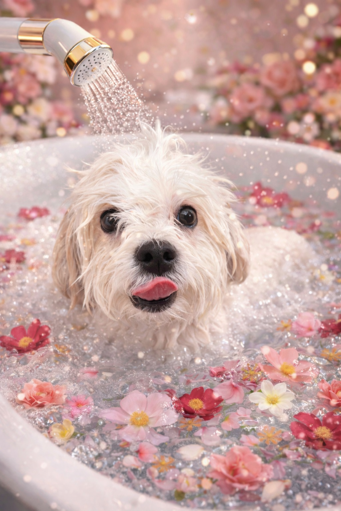そらくん。炭酸泉温浴と~っても気持ちよさそうでした~。お仕上がりもと~ってもふわっふわっで~す。🎵🎵🎵