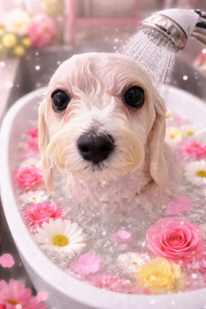 らむくん。炭酸泉温浴と~っても気持ちよさそうでした~。お仕上がりもと~ってもふわっふわっで~す。🎵🎵🎵