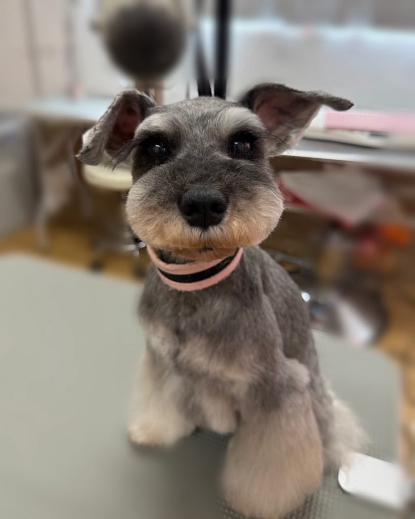 今回のオーダーは、お体2mmシュナライン、四肢25mmブーツ、お顔シュナウザーカット、眉&お口元まあるく、まつげ3.5cm残しでした。