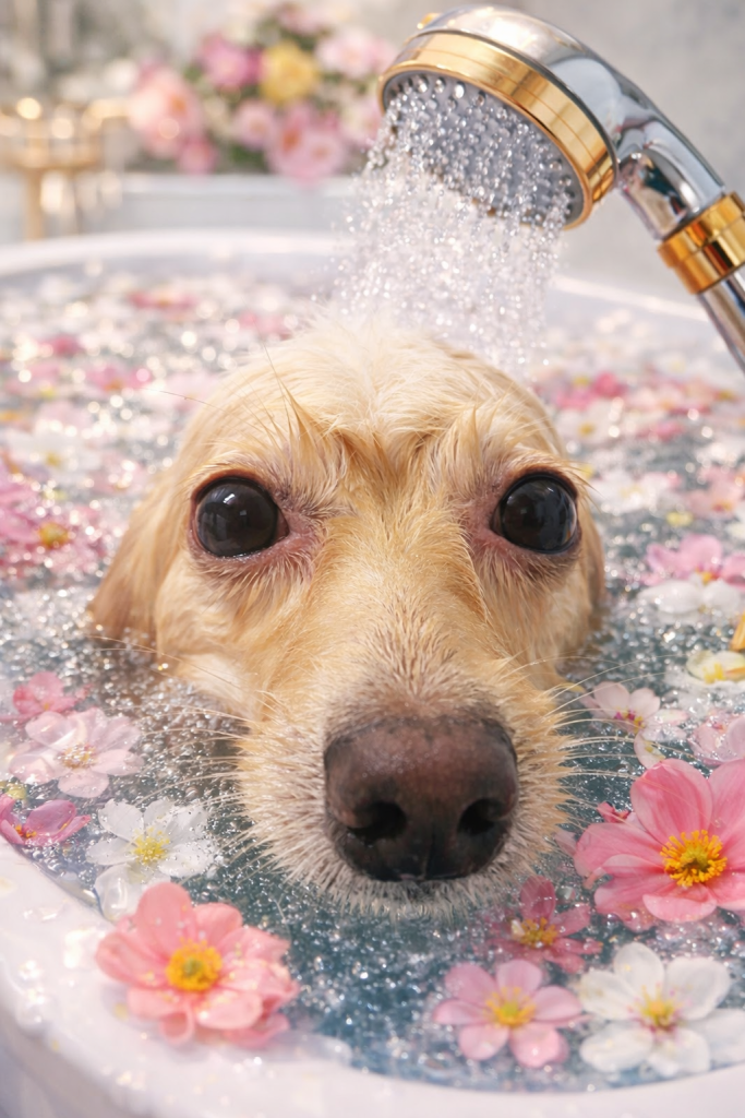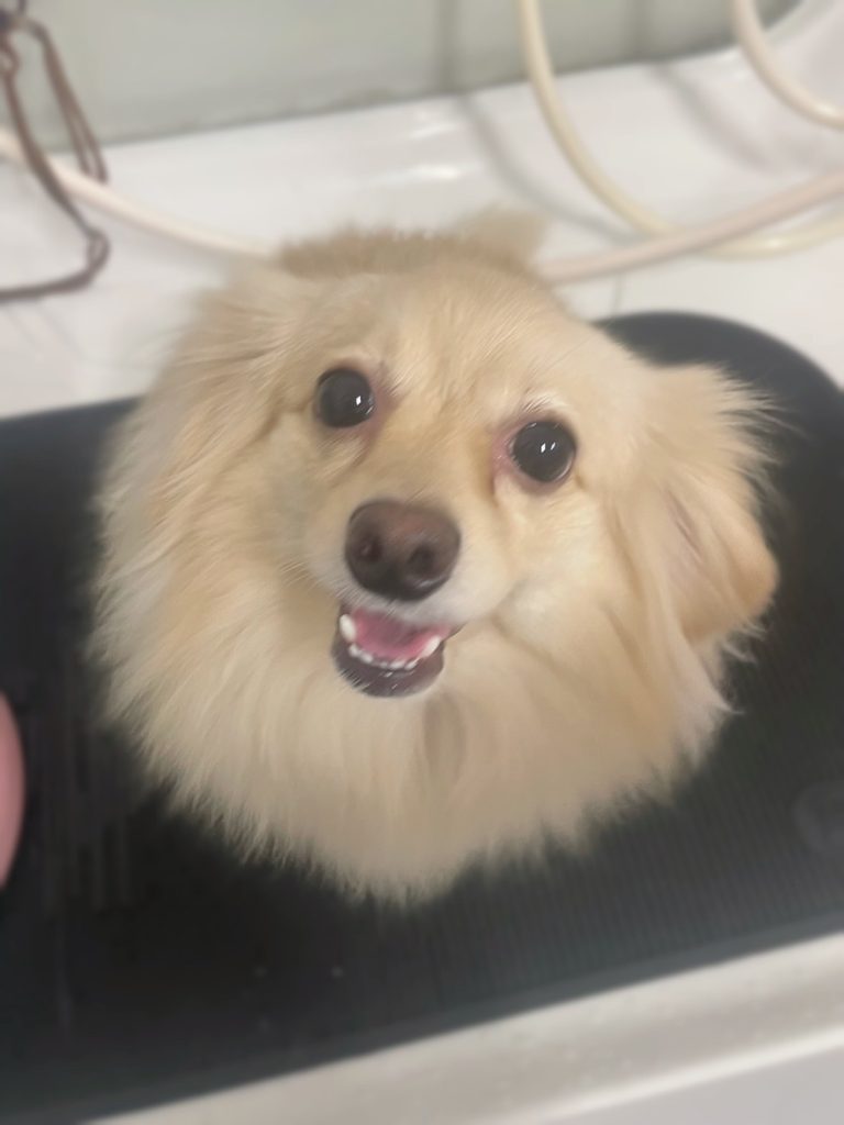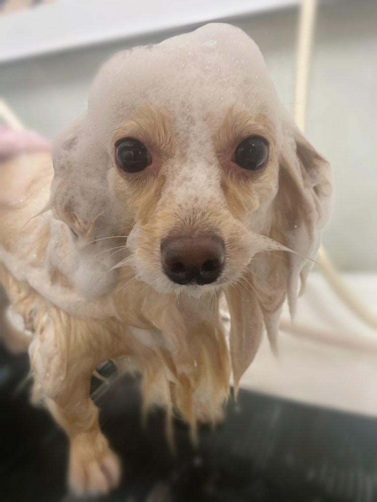凪くん。炭酸泉温浴と~っても気持ちよさそうでした~。お仕上がりもふわっふわっで~す。😝😝😝