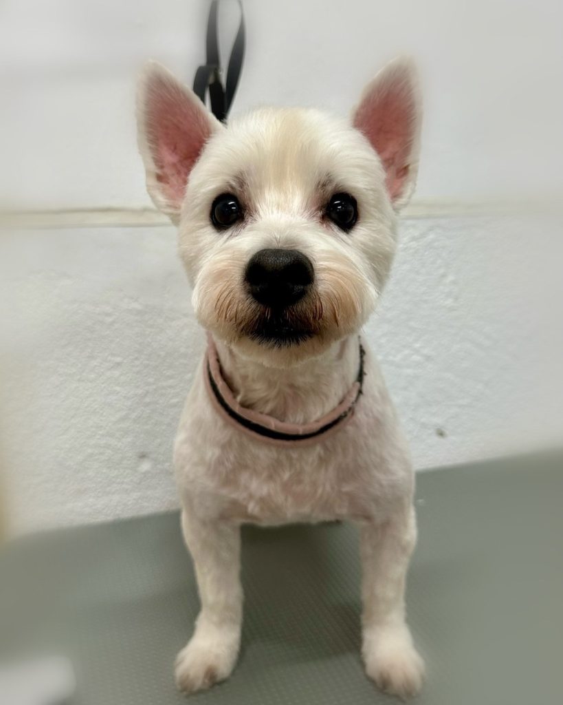 2026.03.17 ブログ 蓮くん ウエストハイランドホワイトテリアの蓮くん。 こんにちは(^^)/ 今回のオーダーは、全身3.2mm、お顔短めウエスティカット、お耳なりにカットして前はスッキリでした。 ママさん。と仲良~くご来店いただけた蓮くん。😍😍😍 トリミングも担当STAFFと楽しそうに進めていました。✂️✂️✂️ ありがと~。蓮くん。🎵🎵🎵 カットコースで蓮くん。さ~っぱりしましたヾ(≧▽≦*)o 蓮くん。ありがとうございました。( *´艸`)