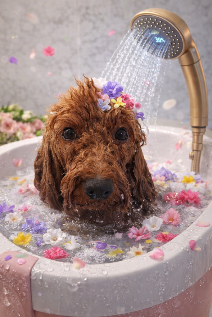 塁くん。炭酸泉温浴と~っても気持ちよさそうでした~。お仕上がりもふわっふわっで~す。😝😝😝