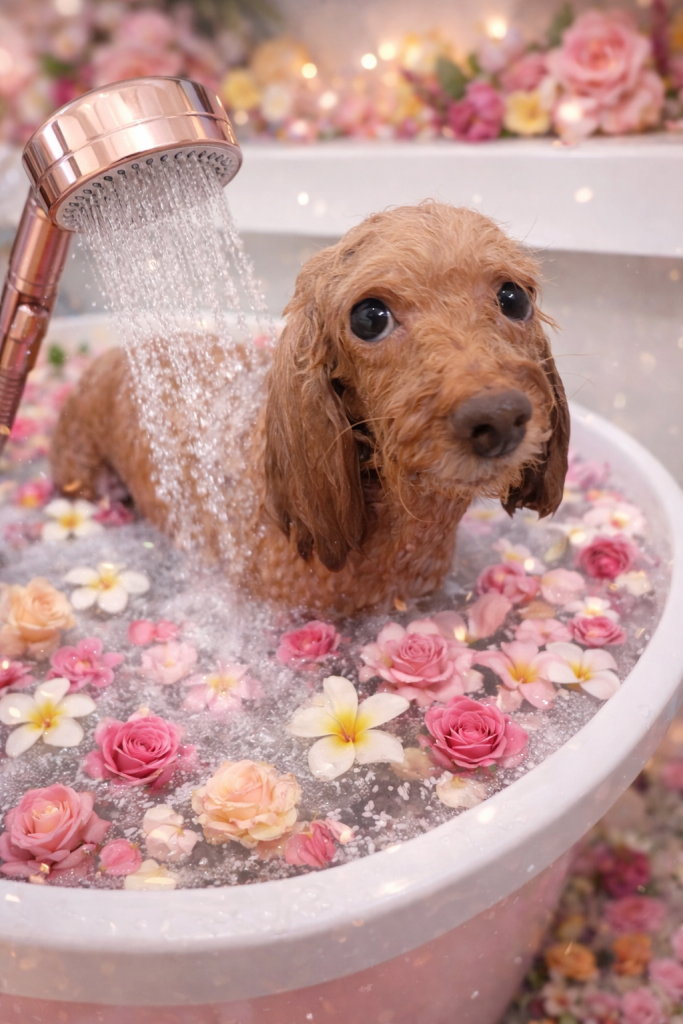 コアくん。高濃度炭酸泉温浴と~っても気持ちよさそうでした~。でお仕上がりもふわっふわっで~す。🎵🎵🎵