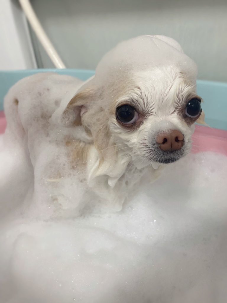 シャンプーコース+部分カット+マイクロバブルコース+高濃度炭酸泉スパWコースでマロンちゃん。さ~っぱりしました。ヾ(≧▽≦*)o