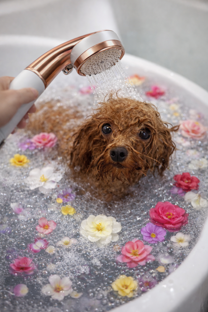 モアちゃん。炭酸泉温浴と~っても気持ちよさそうでした~。お仕上がりもふわっふわっで~す。😆👍